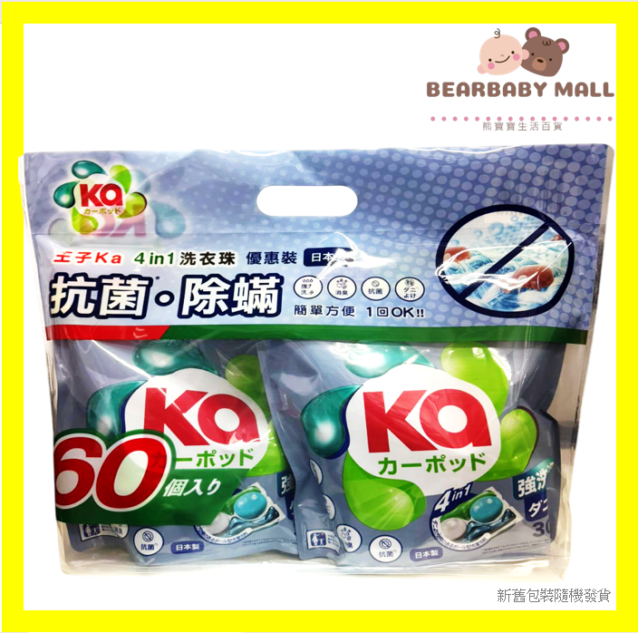 Ka王子4合1洗衣珠抗菌除蟎袋裝60粒[原裝正貨]