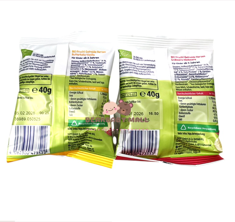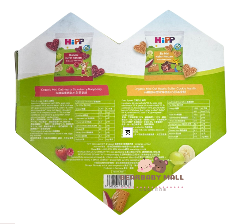HiPP Organic Mini Heart Oats(Buttercookie-vanilla & Strawberry-Raspberry) EXP:29.1.2026