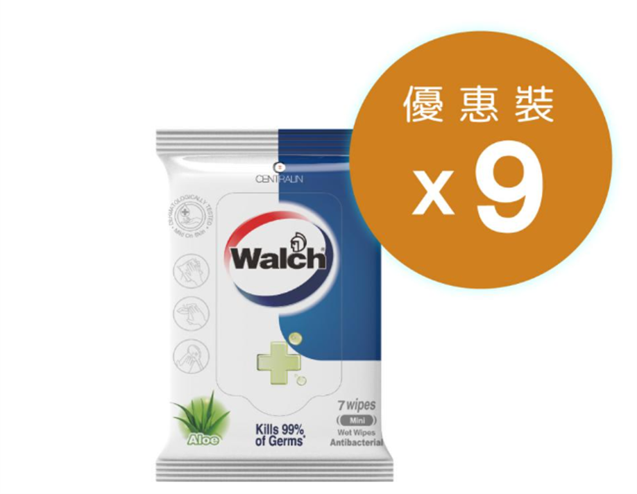 威露士消毒濕巾蘆薈迷你裝7片 X9包優惠裝