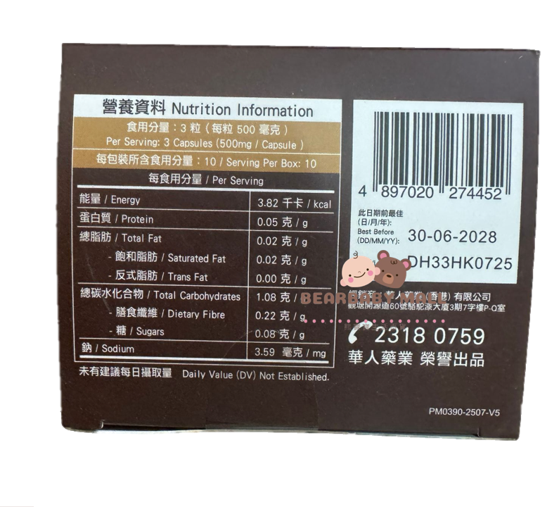 每盒 30粒,每粒500毫克,連膠囊