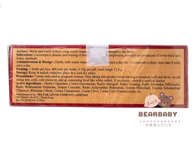 Administration & Dosage: The pill is taken by mouth with warm or slightly salted water. Take 8 pills 2 times a day for the first 10 days then take 8 pills once a day. When used as a tonic, take 8 pills 2 or 3 times per week.