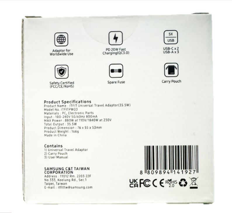*UK pin has been sealed according to the HK regulation. For overseas, please remove the seal, make sure there are no debrits block the pin*